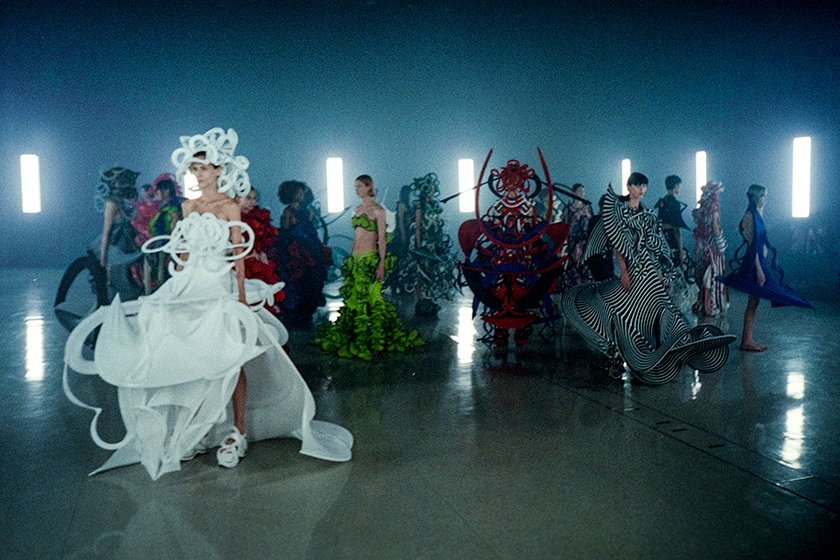 2021年9月、楽天ファッション・ウィーク東京で発表されたRYUNOSUKEOKAZAKIのデビューコレクション。縄文土器をインスピレーション源とする《JOMONJOMON》、花や昆虫を思わせる造形の《Nature's Contours》という2つのシリーズを披露した。このランウェイをきっかけに翌年、若手ファッションデザイナーの世界的なコンテスト、LVMHプライズのファイナリストに選出。フランス・パリでドレスを紹介する機会を得た。